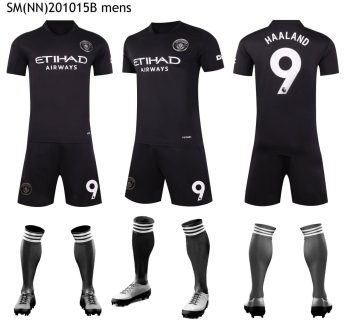 Manchester City black kit with Etihad Airways sponsor, Haaland #9.